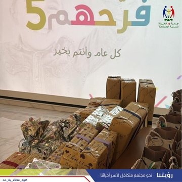 نظمت جمعية ود الخيرية "مبادرة فرحهم"، والتي تهدف إلى إدخال البهجة إلى قلوب الأطفال وجعل عيدهم مميزًا لا يُنسى! شكر خاص لأسرة كريمة من فاعلي الخير على هدايا الأطفال، و لمطعم