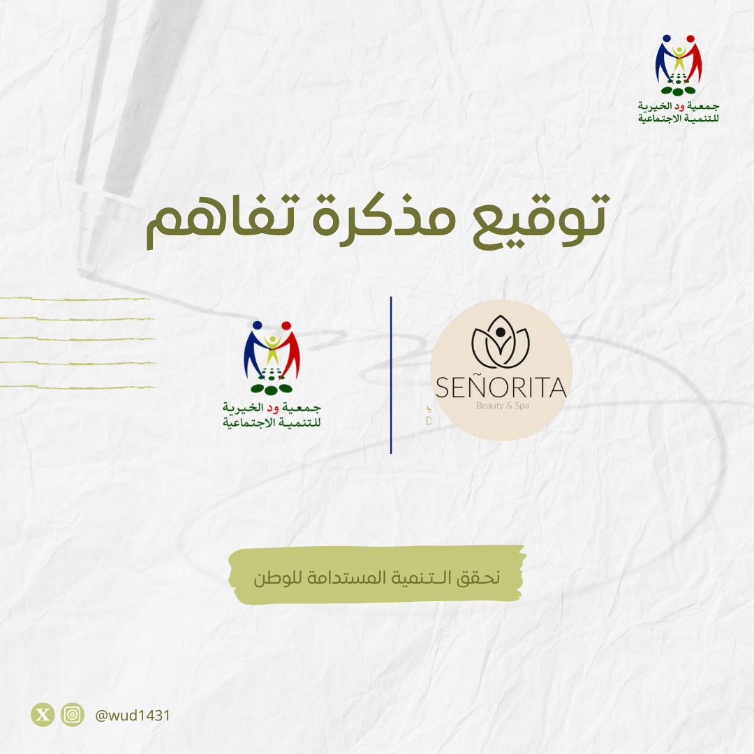 وقّع رئيس مجلس إدارة #جمعية_ود، أ. نعيمة الزامل، اتفاقية شراكة مجتمعية مع صالون سنيوريتا في الخبر ، بهدف تقديم كوبون خصم للأعضاء وللموظفات.